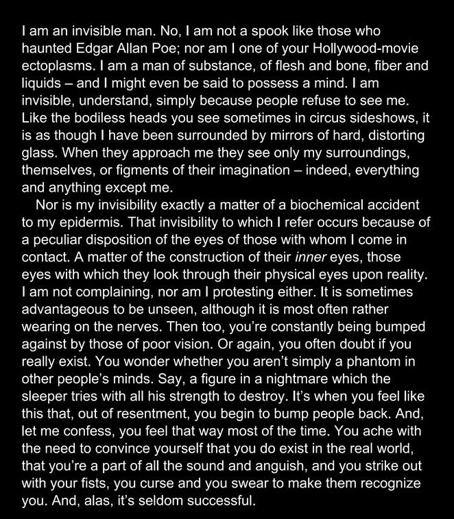 Ellison, R. (1952/1965). Invisible man. London: Penguin Books