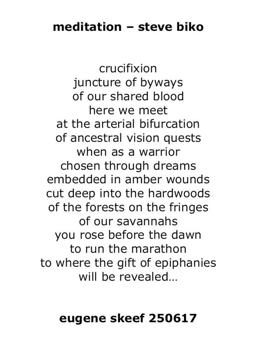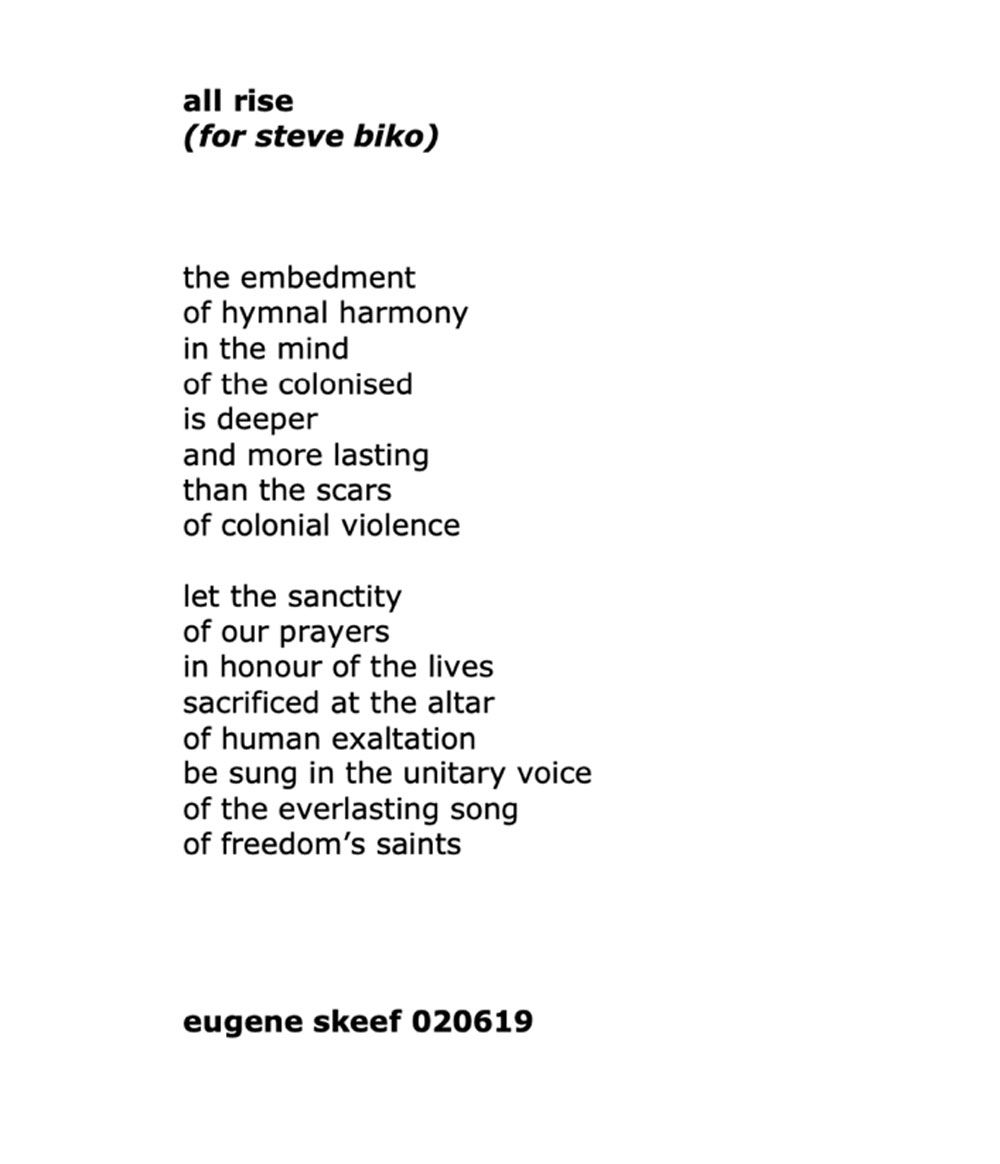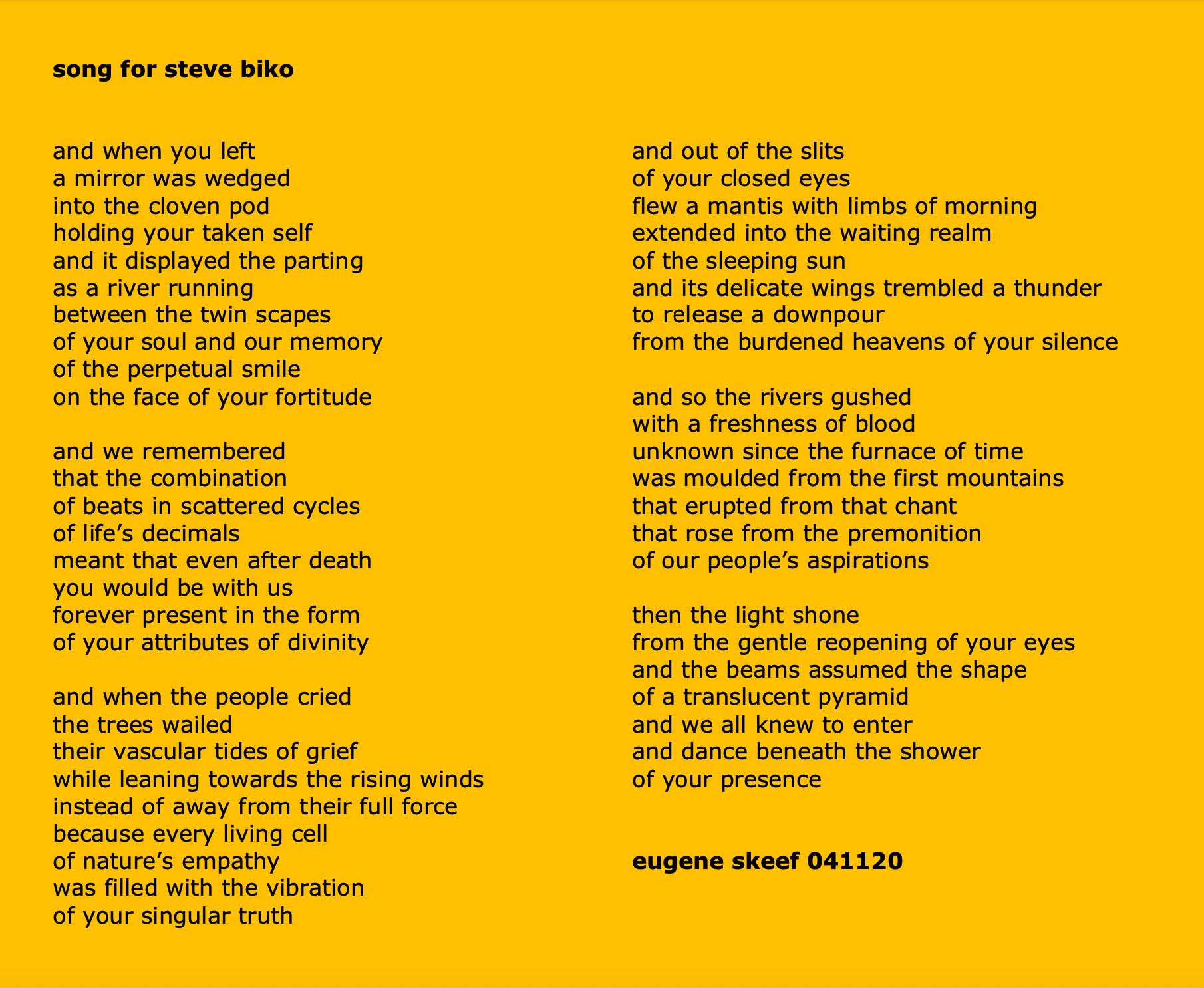 It was heartening for me, therefore, to meet a young White student who was unapologetically immersed in the contemporary Black Consciousness culture of spoken word, poetry, and related artforms. This discovery gave me much more hope and affirmation that Steve Biko was very much alive and in our midst.