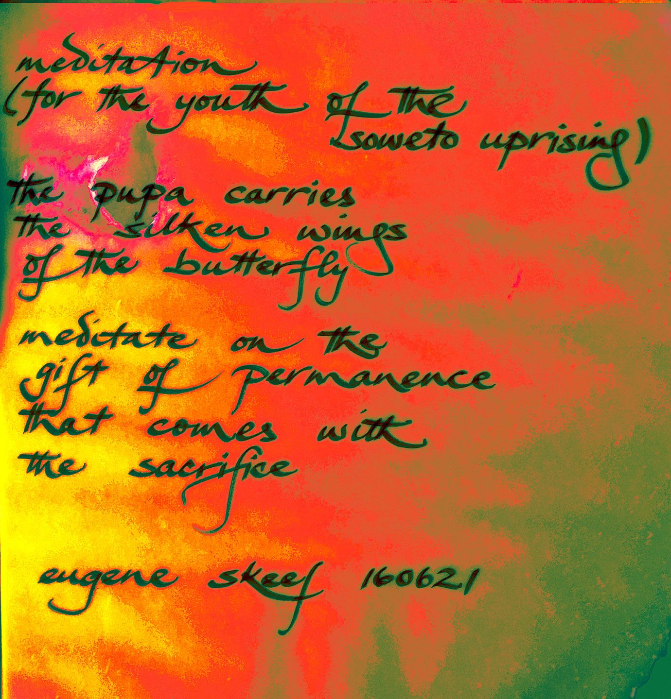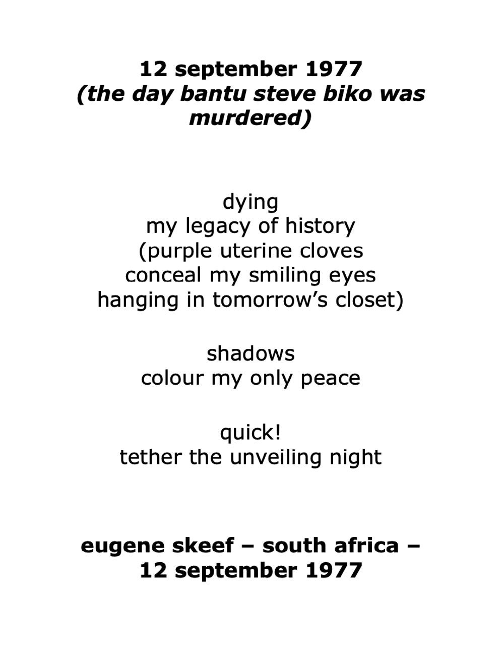I was particularly struck by Leah because she was the only White person nestled among a cluster of Black fellow students. She was not visibly as volubly demonstrative as they were, but there was no doubt that she quietly matched their spirit and inner resolve to be an active part of a new testament to the transformative power of Black Consciousness Poetry.