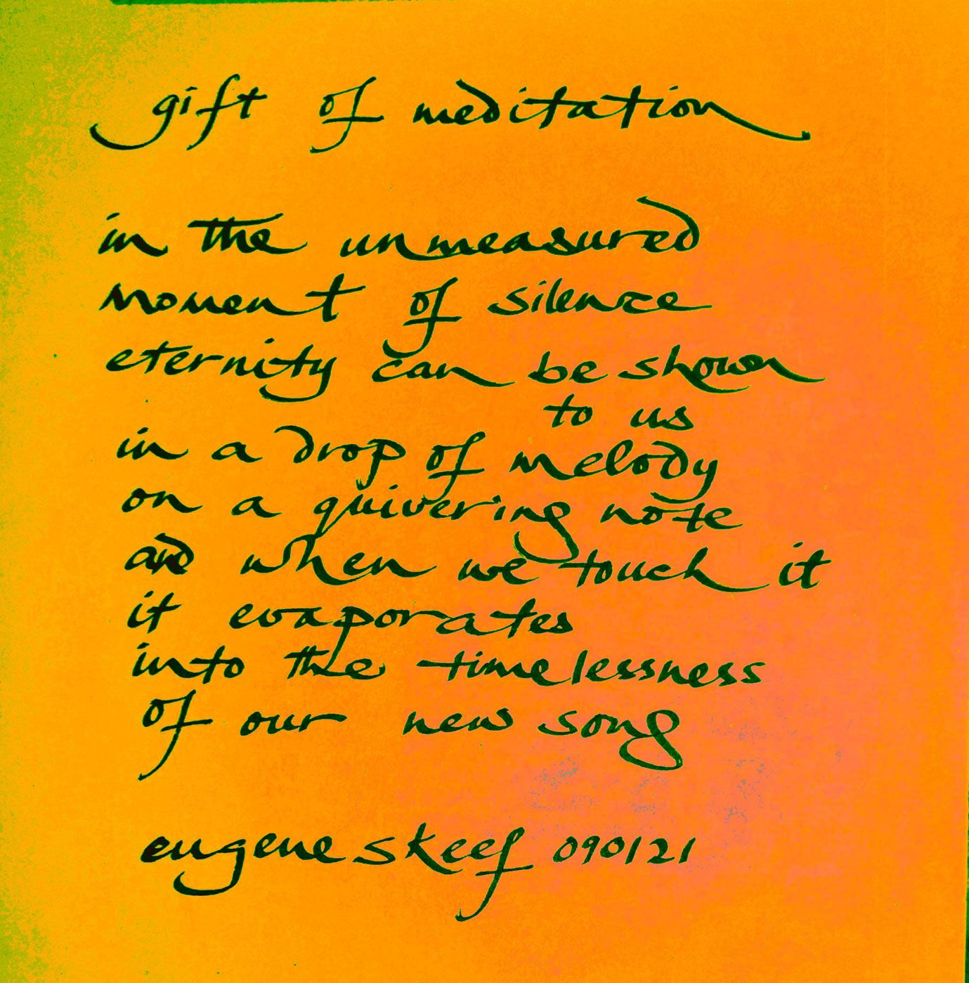 My creativity is an expression of attaining towards my childhood. When I act like a child, I become one with myself. This is not a regression, a going backwards. It is an advancement to that point in my life where everything is everything. All things in the universe move in cycles. The more I progress, the closer I get to where I started. So, right now, I’m at the most beautiful place I could imagine. I am where poetry speaks to me as a child and asks me to write it with the innocence of having just learned to respond to the revelation of the beauty of nature’s bounty.