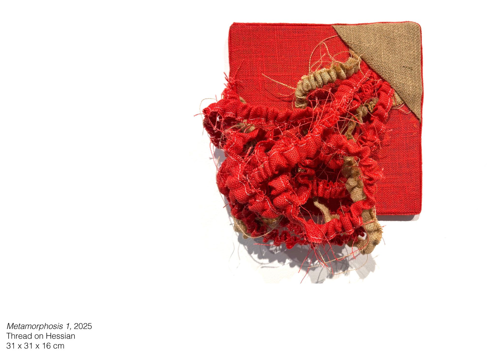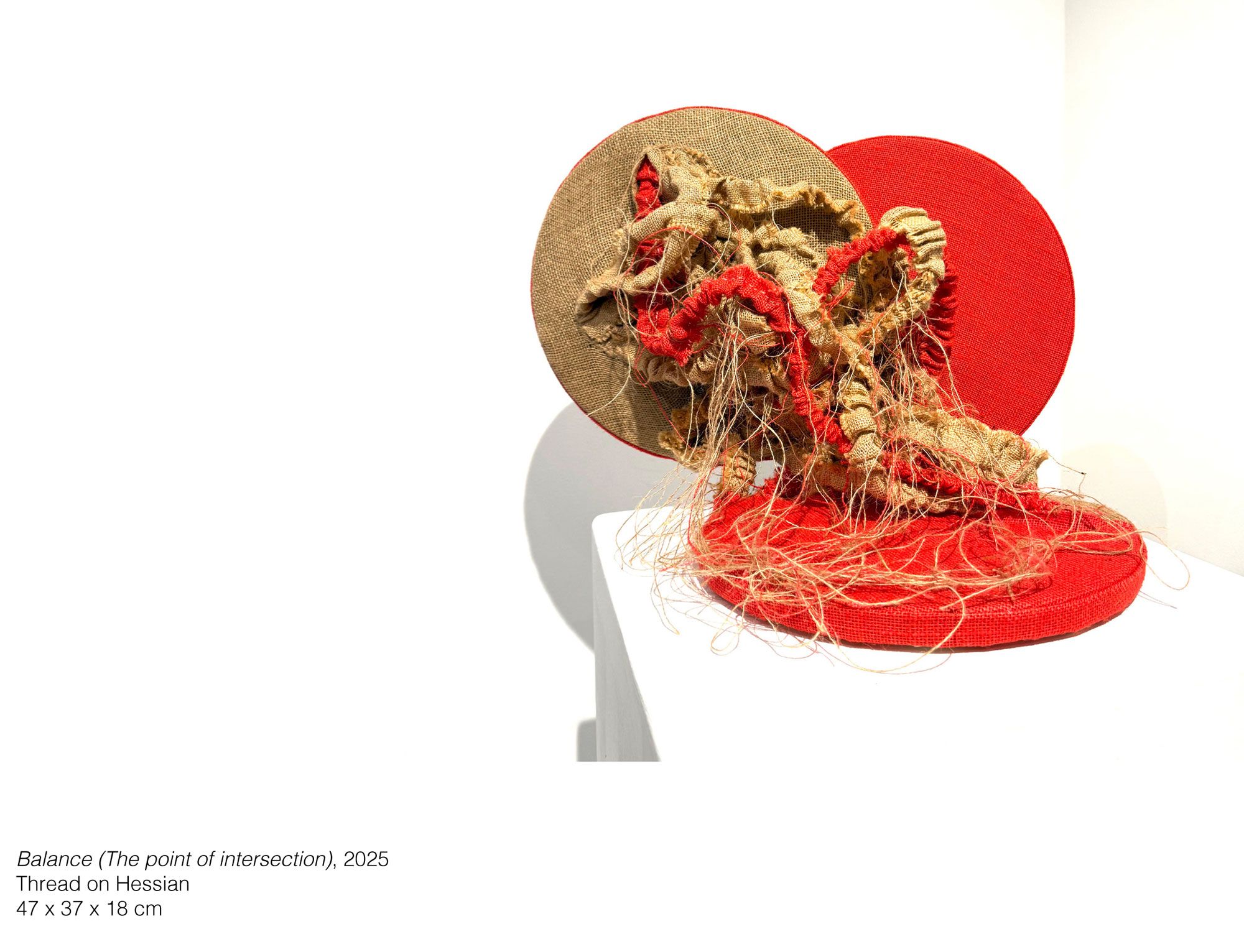 Through textile, and mixed media, the exhibition reimagines these narratives with Hessian cloth as a central motif, an emblem of continuity, vulnerability, and resilience. It becomes skin, shroud, and scripture: the material that binds the ancestral past to the contemporary body.