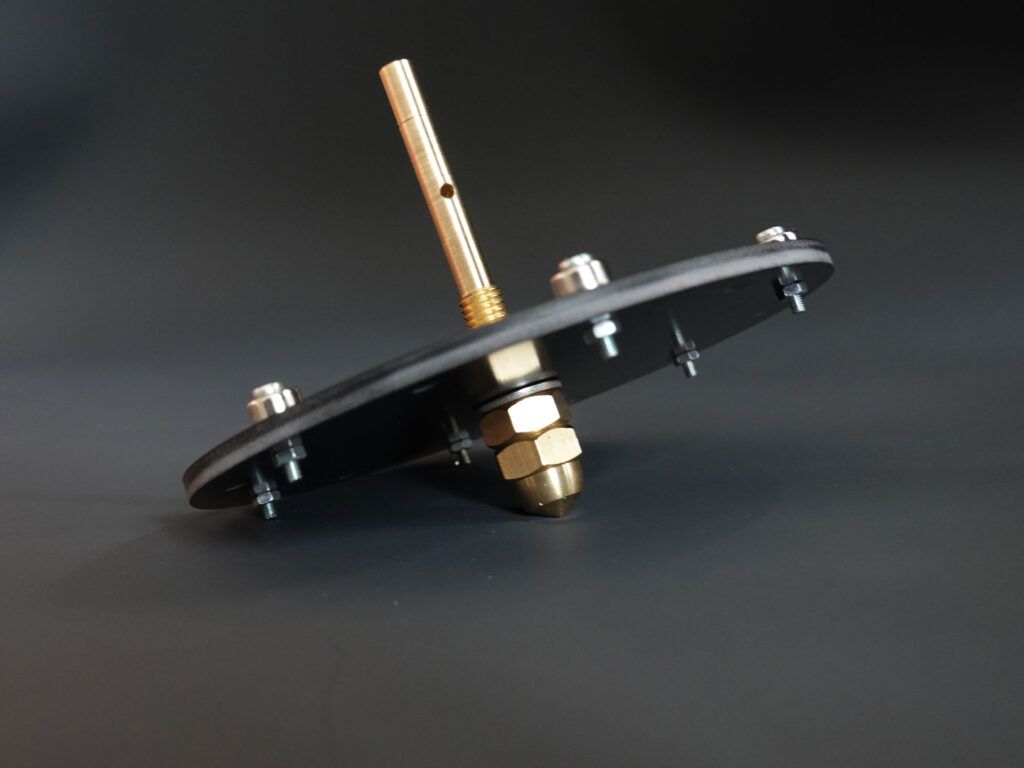 While you pick up the turning magnetic field with the copper-coil you closely feel the pulse of the induced current in your hand, simultaneously listening to its amplified sound through the space. By playing this instrument your whole body becomes attuned to each and every one of the top’s turns and wobbles. You sense, see and listen to the effects of gravity and the play of centrifugal forces.