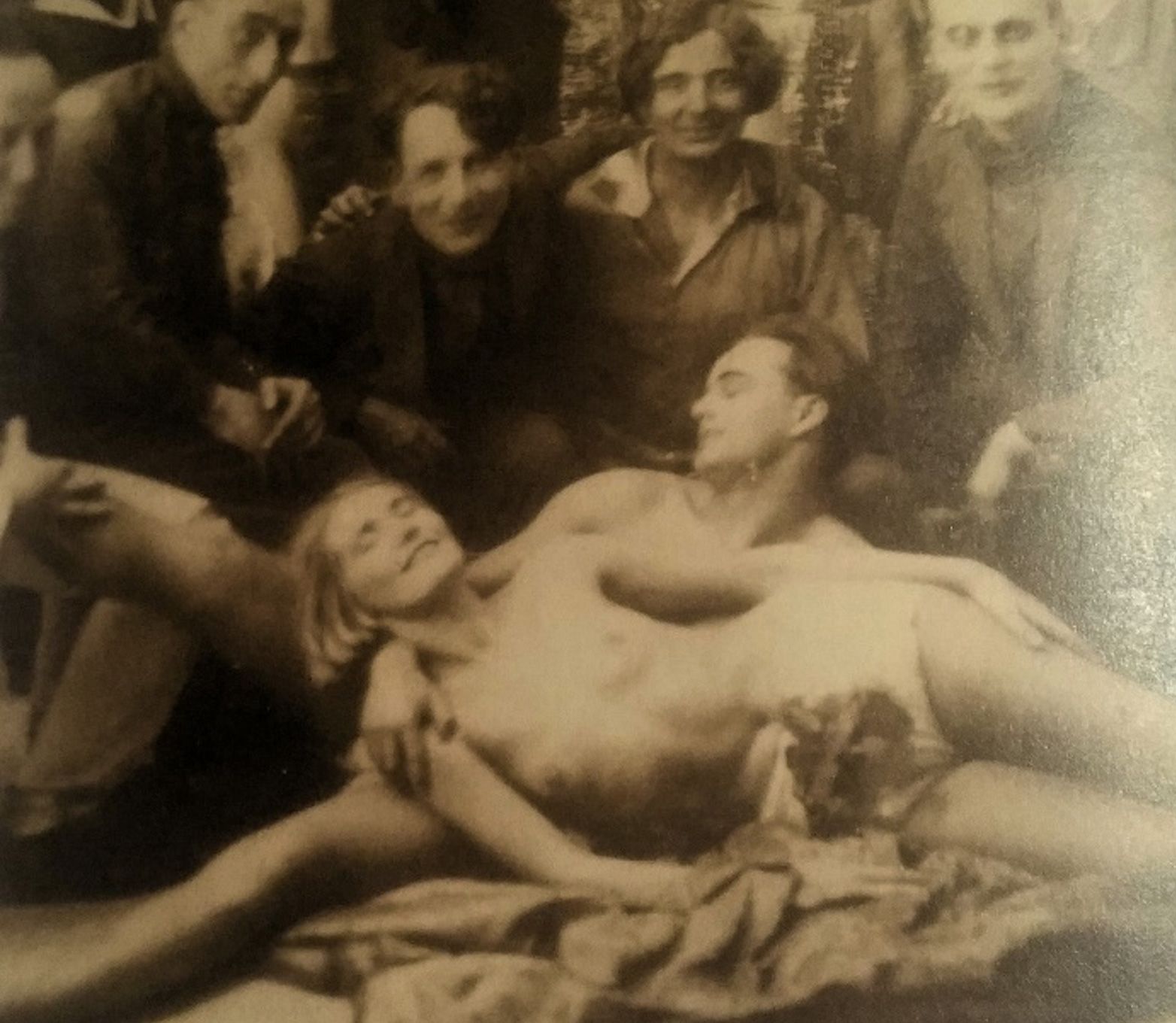 On the right above: the famous actor Gustaf, next to him a lady called Erika, next to her a Paul, next to him Willi the fine artist, next to him my grandad, below, the infamous Klaus (naked) and the sublime dancer Elsabe (naked). That was Hamburg and that was a small section of its avant-garde!