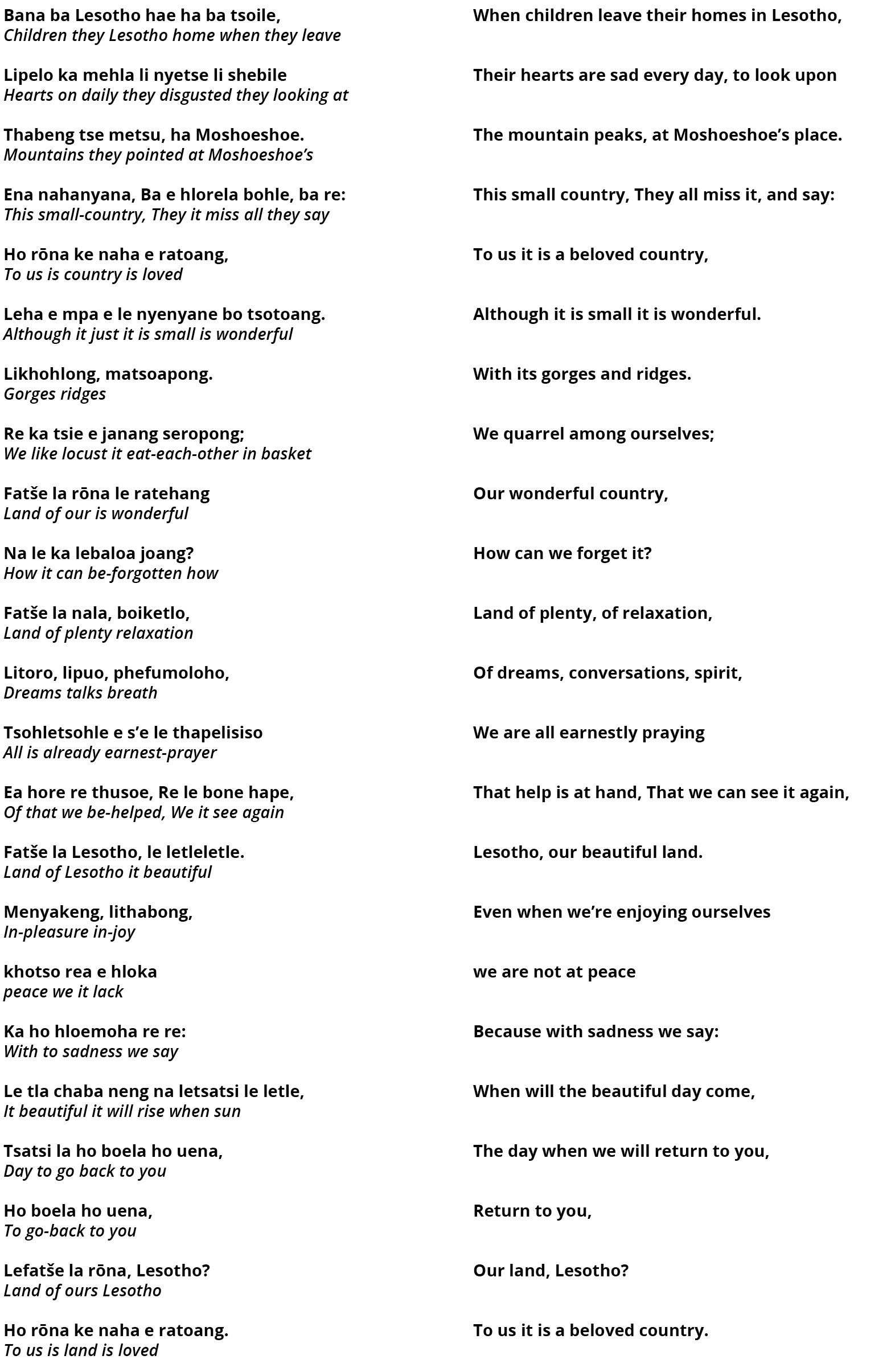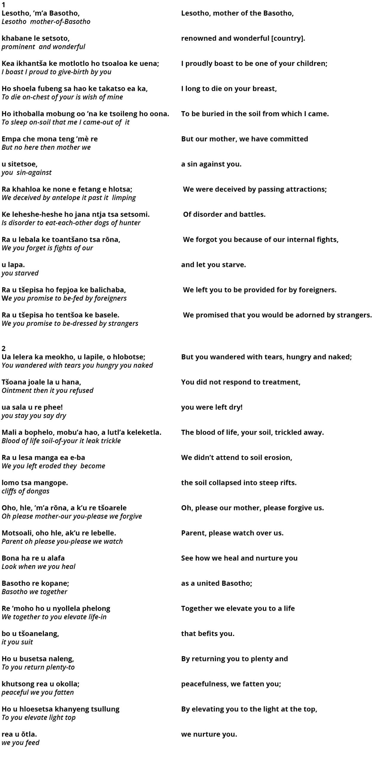 Text of ‘Lesotho ’M’a[11]This is an abbreviation and elision of ‘mmè’ [mother] and ‘ea’ [of]. Basotho’ [Lesotho, Mother of the Basotho] by J.P. Mohapeloa
