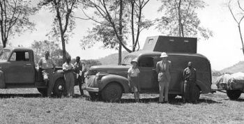 While colonial authorities dismissed indigenous groups’ song and dance as insignificant, Tracey recognised its significance for humanity, and emerging African modernities. He complained, “At that time the public showed little interest in African music and did not understand why I constantly stressed the social and artistic value of the music for future generations of Africans”. He returned to England in the early 1930s and presented some of the recordings to members of the Royal College of Music in London. It was enthusiastically received by Ralph Vaughn Williams and Gustav Holst who urged him to continue to “discover & record”. Upon his return to Zimbabwe, Tracey secured funding through the assistance of Mr Harold Jowitt, the Director of Native Development. The Carnegie grant funded his first official stint of fieldwork research between 1932 and 1933 in the Mashonaland area. He captured as much African music as he could using the best modern technology available to him. In his many field recording trips, he would sometimes traipse Karanga men 500 miles south to Johannesburg for recording sessions with a US recording company. At other times travelling into the interior with his field crew, as shown here: