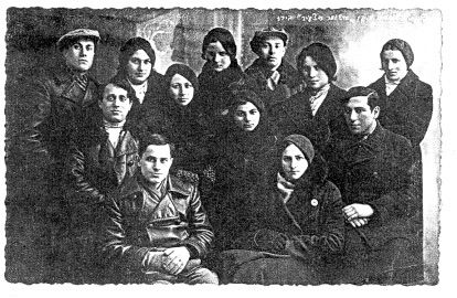Or the group photo that the members of the Zionist youth movement Hashomer-Hatsair proudly had taken. Someone added their names: Gita Vishkin, Esther Gude, Yankelevitz, Sheine Roznikovitz, Bilhah Nakhumovitz, Itke Moril, Hinda Shakhar, Nahum Levitas, Tsivyah Vishkin, Zundl Fin. Confident, determined youngsters in warm winter coats. Sheine Roznikovitz knows how to look seductively into the lens, a dark glance that the men around her must have been impressed by.