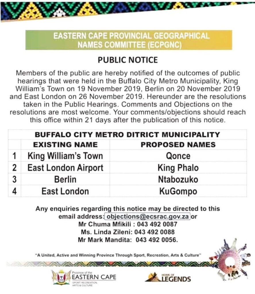 There was an original name for the area before the colonisation that took place in the area after the sixth frontier war (1834-1836), and that should take precedence over a name that comes from bastardisation. The sixth frontier war was part of the 100 year Frontier war between tribes now erroneously grouped under the collective banner of Xhosa people and European Settlers who were expanding their frontiers from the stronghold of Cape Town.