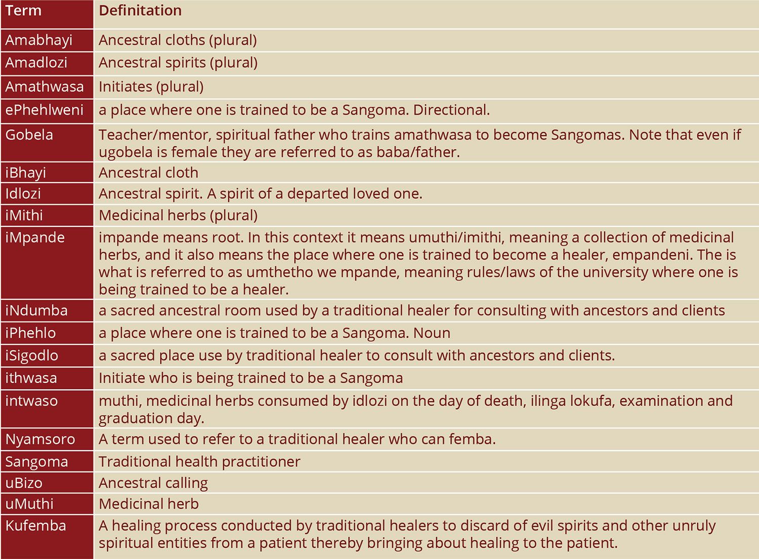 Once one has confirmed that they have ubizo, there is a process called ukuvuma ukufa or imvuma kufa (literal translationaccepting death)that must take place prior to going to ephehlweni, the training college.