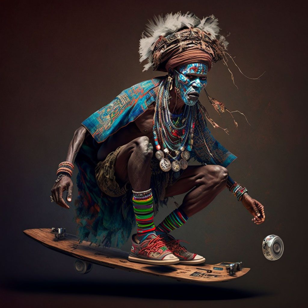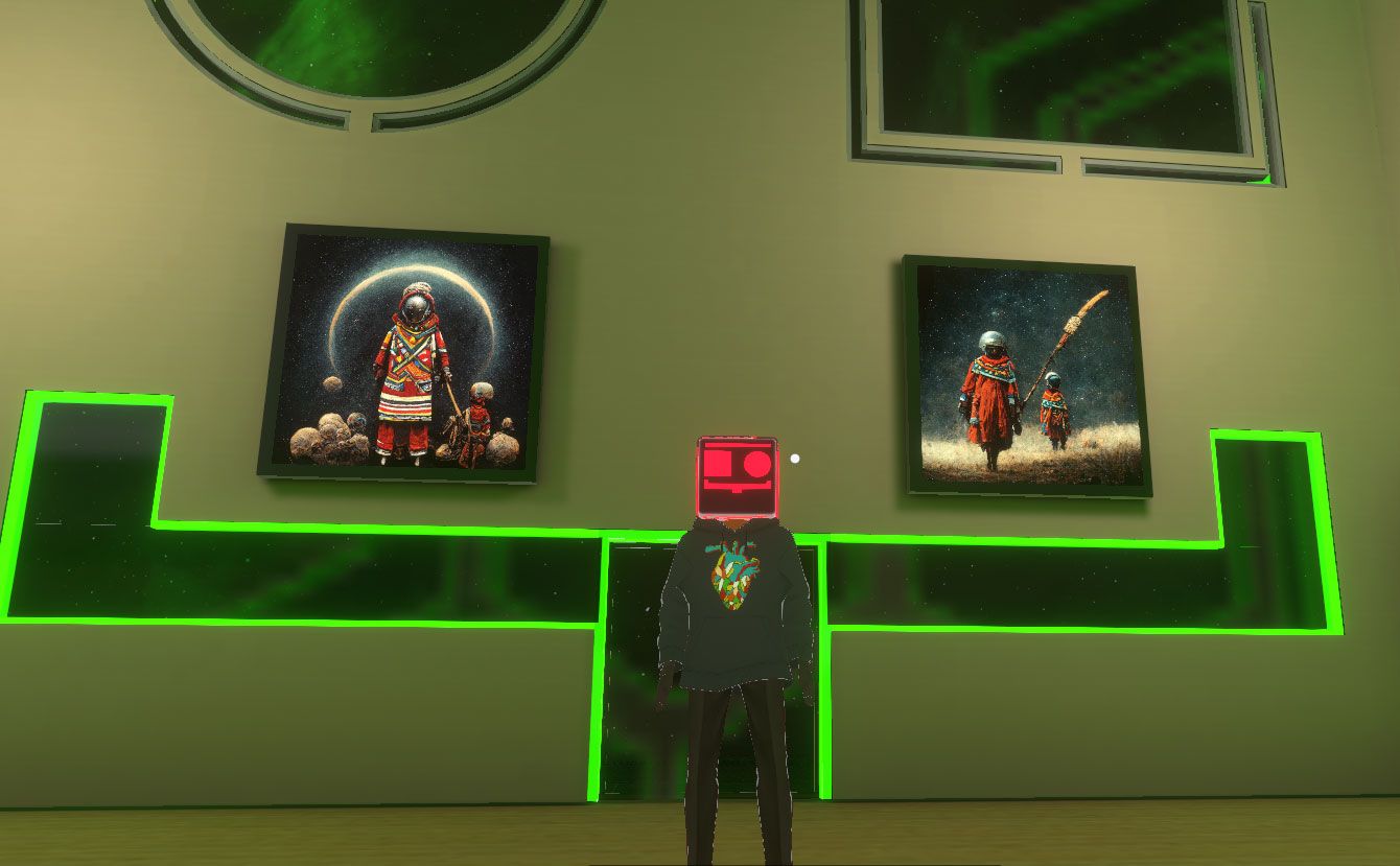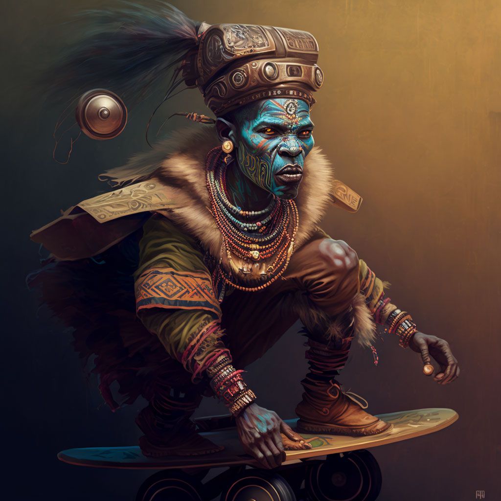 Text to Image Generation: We used an AI art software tool called Mid journey to create concept art for Sangoma on a Hoverboard and we also used Mid journey to create 50 artworks that are hosted in the virtual worlds. Mid-journey converts text or prompts to images or beautiful art. We used the following prompts to create our art, please try them: