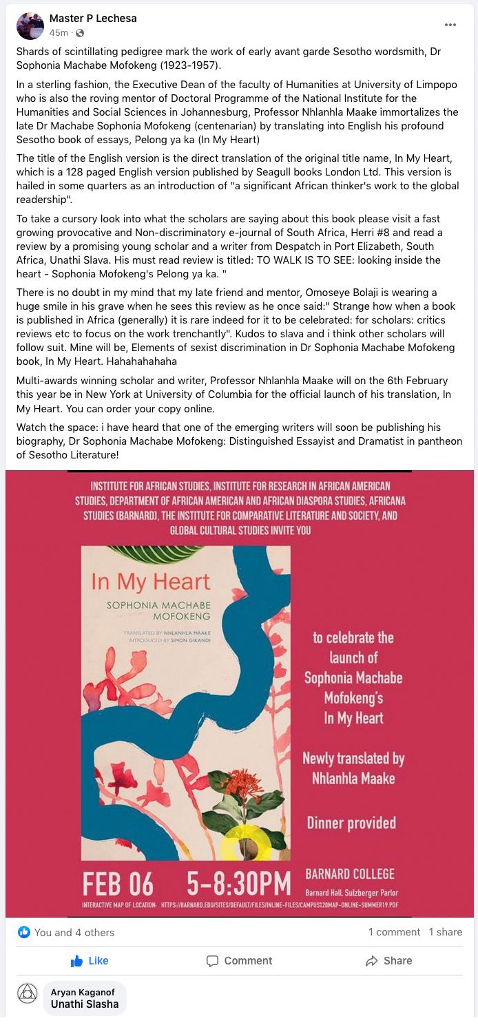 Piecing Together Our Humanity and Consciousness, Through Art, Life and Nature: Some thoughts about friendship with the artist, musician and wordsmith: Lefifi Tladi